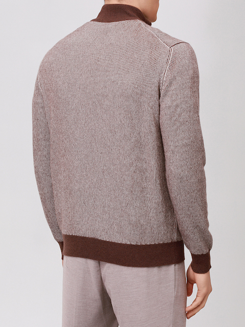Бело-коричневый вязаный джемпер из кашемира от JOHNNY MANGLANI.