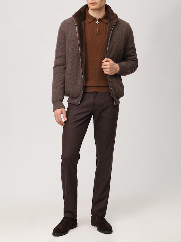 Коричневый джемпер из пряжи купажированного состава с узором от JOHNNY MANGLANI.