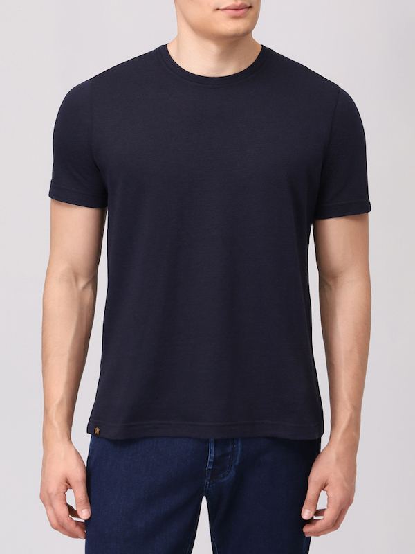 Модель полуприлегающего кроя с короткими рукавами и круглым вырезом горловины. Футболка выполнена из мягкого хлопка и кашемира, который не раздражает кожу, хорошо пропускает воздух, быстро впитывает и отводит лишнюю влагу.