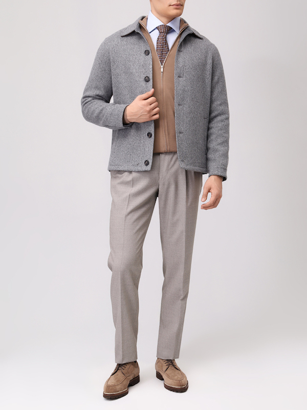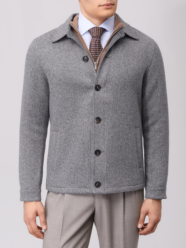 Куртка из шерсти и шелка в сером цвете от JOHNNY MANGLANI.