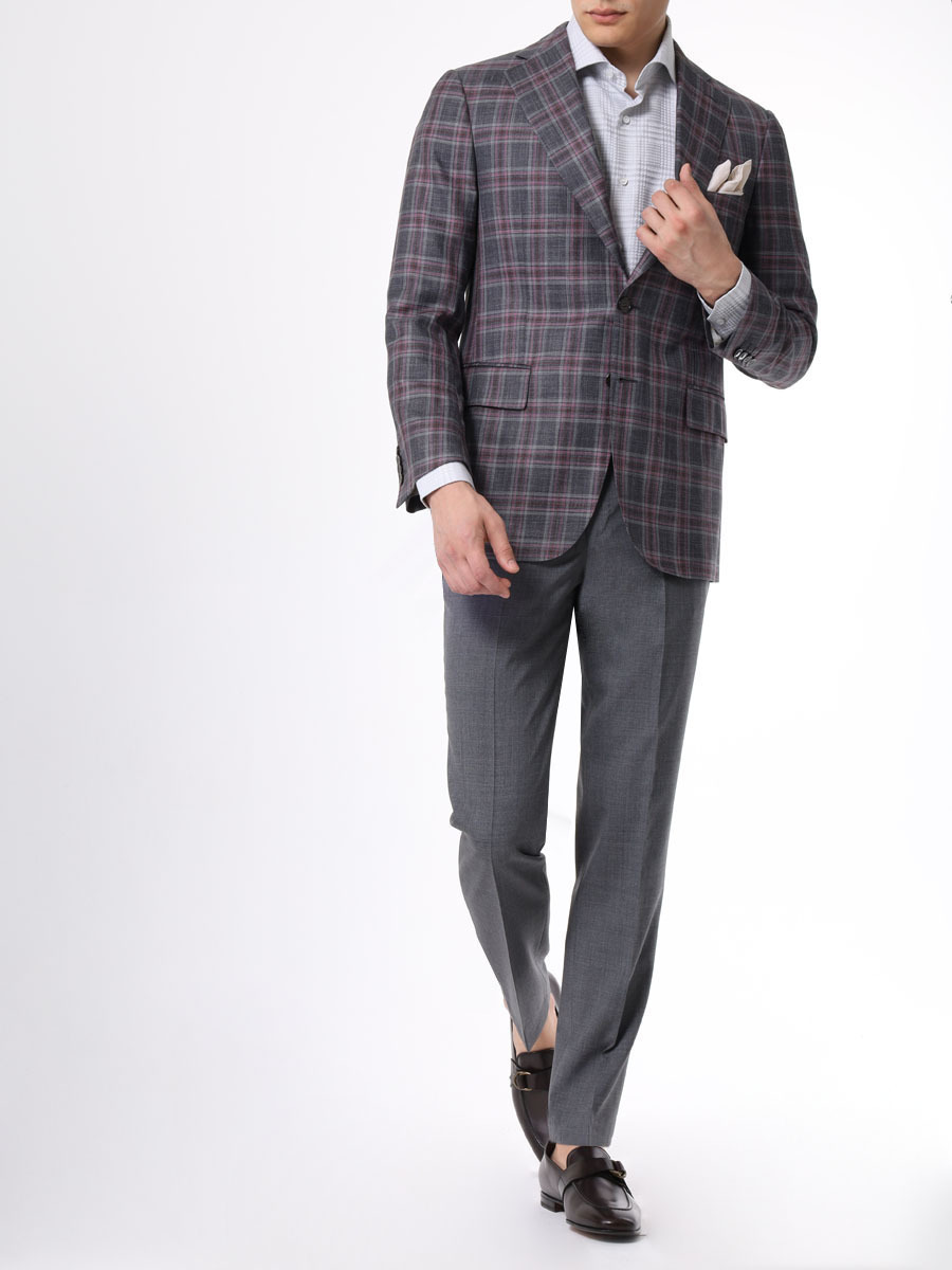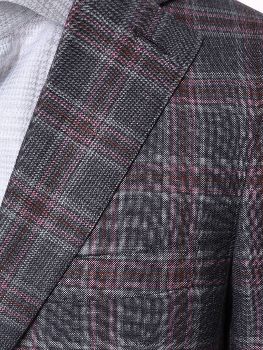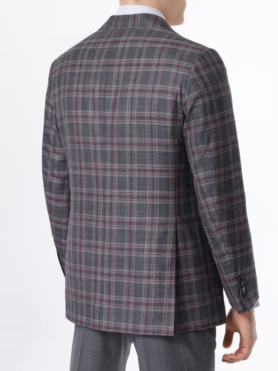 Серый однобортный пиджак в клетку из шерсти от JOHNNY MANGLANI.